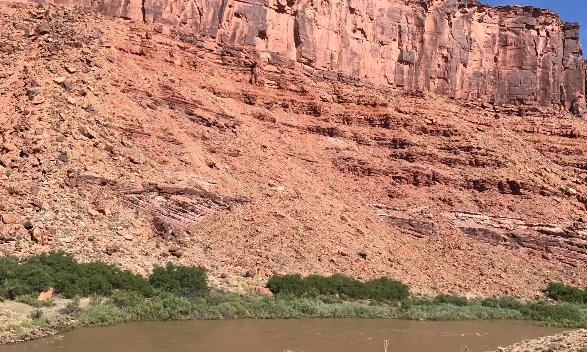 As if this Park weren’t enough, we continued on to Canyonlands National Park. While the wonders of Arches rise ‘UP” the splendor of Canyonlands is below. The Park’s brochure points out Canyonlands (established as a national park in 1964) preserves a wilderness of rock (336 thousand acres of Utah’s high desert) at the heart of the Colorado Plateau. Water and gravity (the land’s primary architects) cut flat layers of sedimentary rock into hundreds of canyons, mesas, buttes, fins, arches and spires.